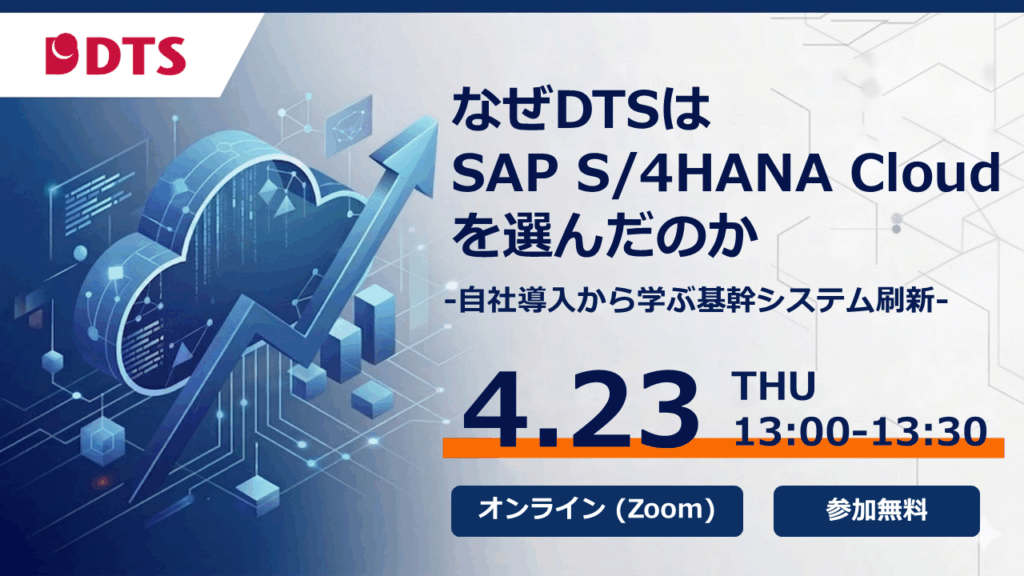 本ウェビナーでは、DTSが実際にSAP S/4HANA Cloud Public Editionを自社導入した経験をもとに、 基幹システム刷新を成功させるための考え方と進め方をご紹介します。