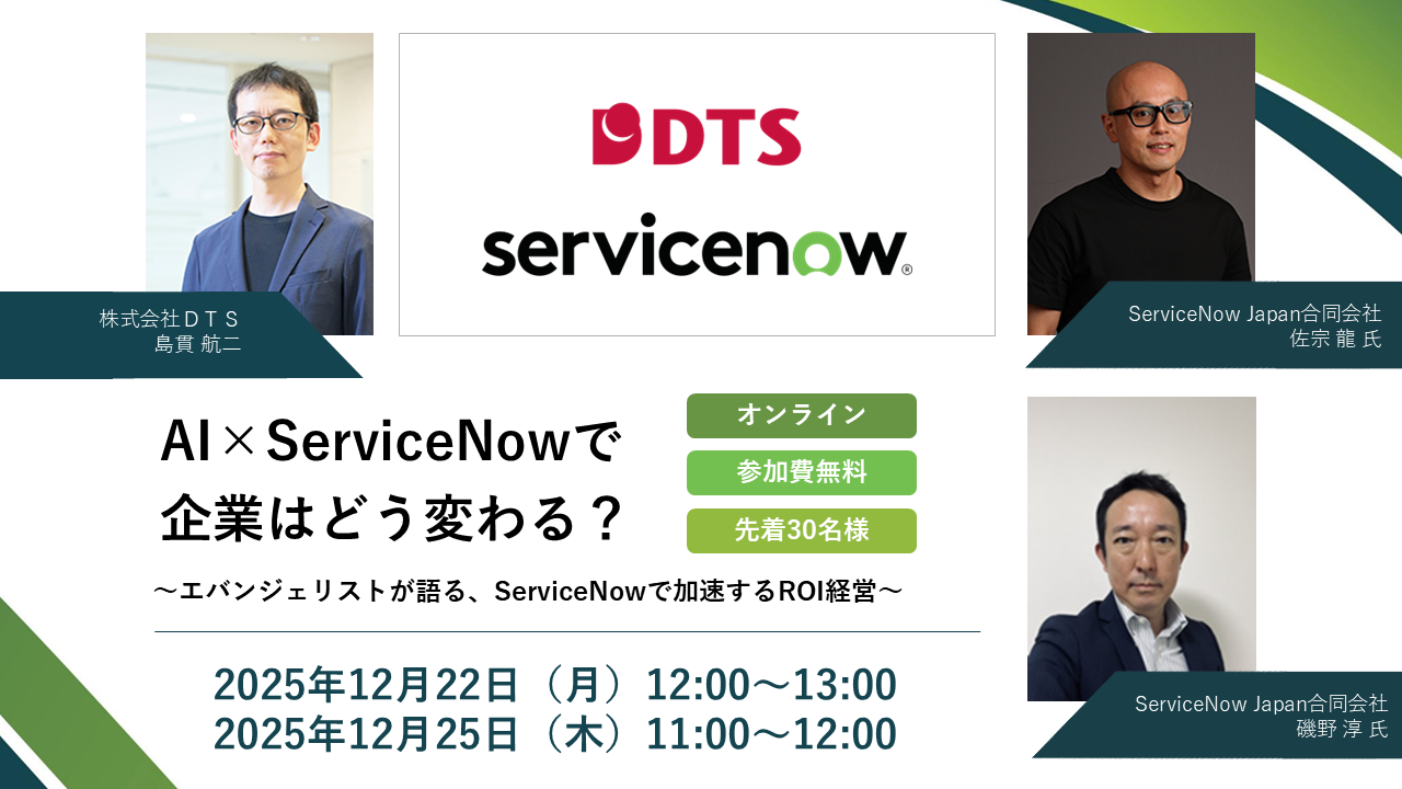 【終了】【ご好評につき再配信!】ServiceNow Japan合同会社との共催ウェビナーを開催(12/22.25)